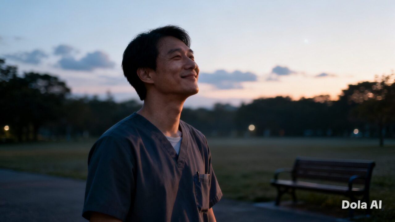 夜勤が無事に終わり、外に出ると空が少し明るくなっていました。